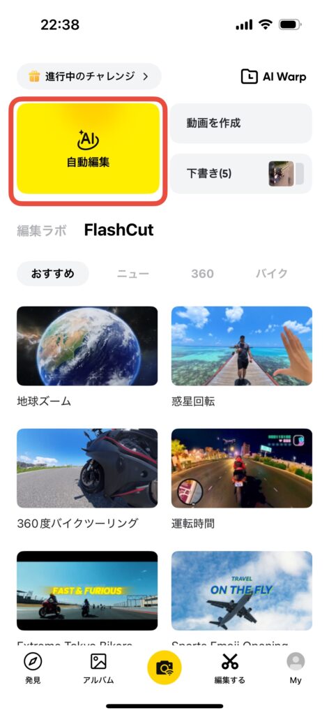 今回の「Insta360」アプリには、選んだ写真や動画を入れるだけでAIが自動でオシャレな動画を作ってくれるのでめちゃくちゃ楽なんです。